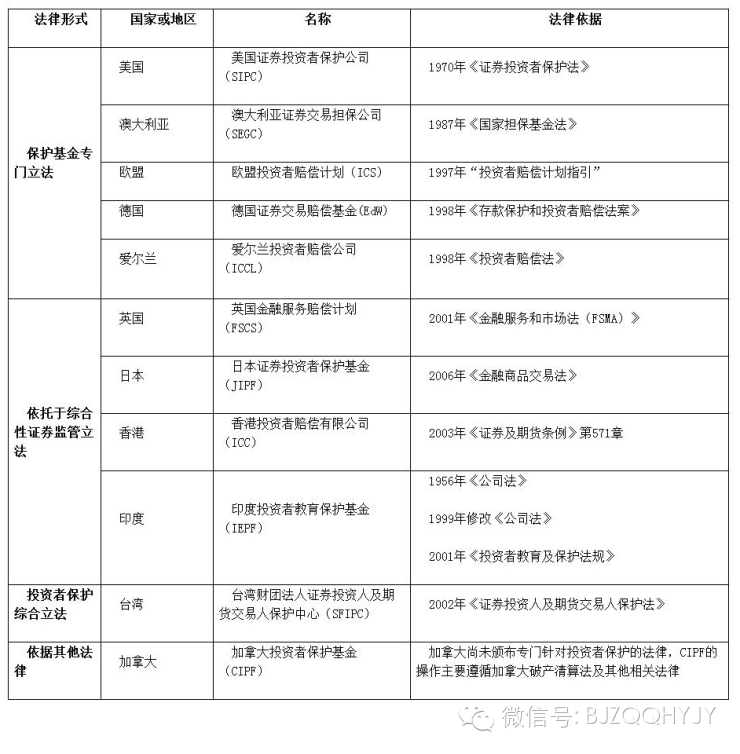 表1:部分国家、地区和国际组织投资者保护基金的立法模式