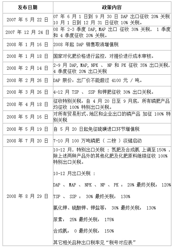 2008年:进入2008年,中国政府更是对出口化肥政策进行了强力干预: