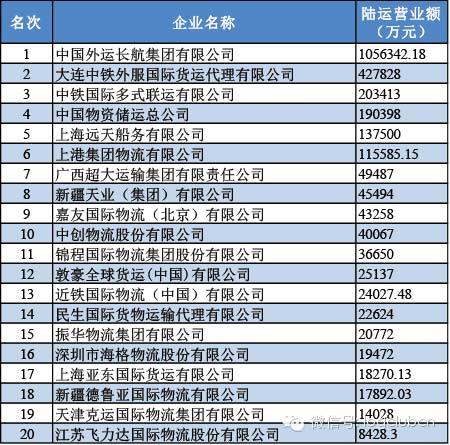 2013年度中国货代物流陆运二十强排名榜公示名单