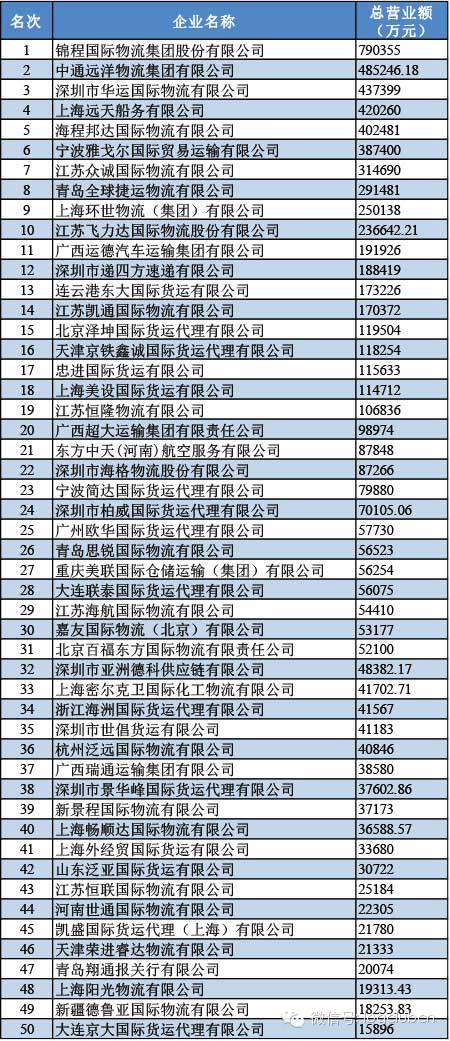 【排名榜】2013年度中国货代物流百强排名榜公示
