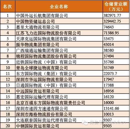2013年度中国货代物流仓储二十强排名榜公示名单