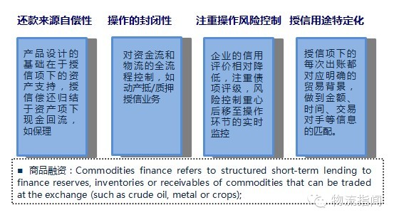 供应链融资具有自偿性商品融资的特点,自偿性指所得销售收入首先用于归还贷款,商品融资指在商品交易中运用结构性短期融资工具,基于商品交易中的存货、预付款、应收账款等资产的融资。