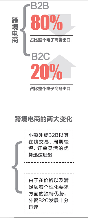 “跨境贸易电子商务的小额B2B和B2C在促进中小企业扩大国际市场份额外,更为重要的一点是,可以有力地提升中国制造企业在国际供应链中的地位。”张汉东说。