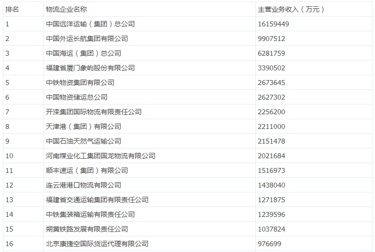 统计数据显示,2011年中国50强物流企业主营业务收入共达7274亿元,同比增长17.5%。其中,中国远洋运输(集团)总公司主营业务收入超过千亿元,中国外运长航集团有限公司等14家企业主营业务收入超过百亿元,同比增加6家。排名第50名物流企业的主营业务收入达到18.79亿元,同比增加6.6亿元,增长54%。