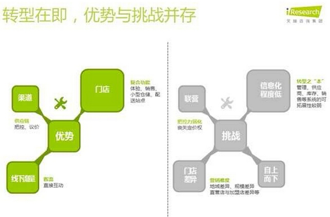 传统百货转型的优劣势纯粹是我个人的观点,我认为传统百货转型过程中最大的优势可能就是它的门店,因为他们的门店是集体验、销售、小型仓储还有配送站点功能于一体的这样一个终端,这个是纯电商企业所无法企及的,这也就是为什么现在天猫、京东会加速向线下渗透,然后主动找这些传统百货合作;第二个就是渠道优势,我觉得他们这么多年跟品牌商和供货商合作使得他们具备了很强的议价能力;第三个优势就是线下流量的情况,其实跟门店也差不多,就是他们能直接面对用户,虽然网络购物的发展非常火爆,但是人们在购物的过程中不仅要购买商品还是要有享受服务和其他娱乐休闲于一体的诉求,所以线下的门店也是他们比较明显的优势。