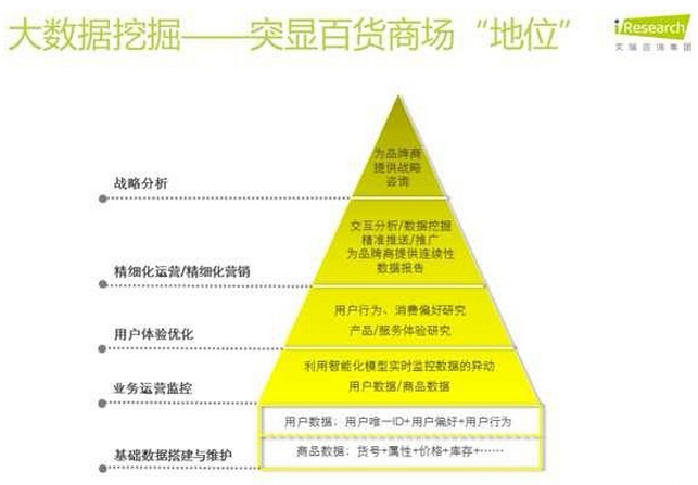 通过商品和用户数据的一个交互分析还有易动数据的一个监控,可以在提升用户体验的层面多做一些工作,再上升一步就是可以为品牌商和供应商提供一个精细化运营或者是库存管理报告,建议分析,从这些方面可以体现传统百货他们作为一个零售商的角色或地位,从而摆脱他们现在的一个“二房东”的形象。