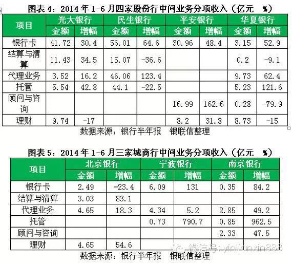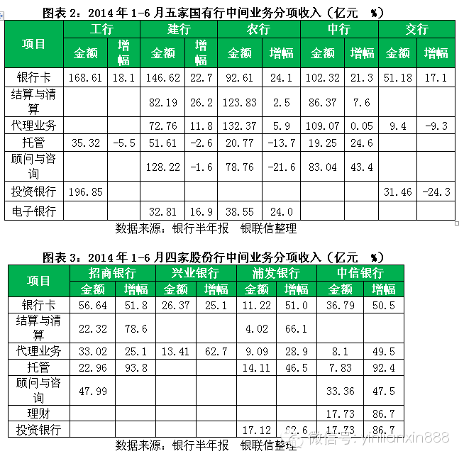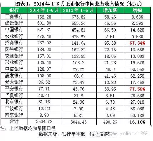 2014年上半年上市银行中间业务收入分析(附详细数据)