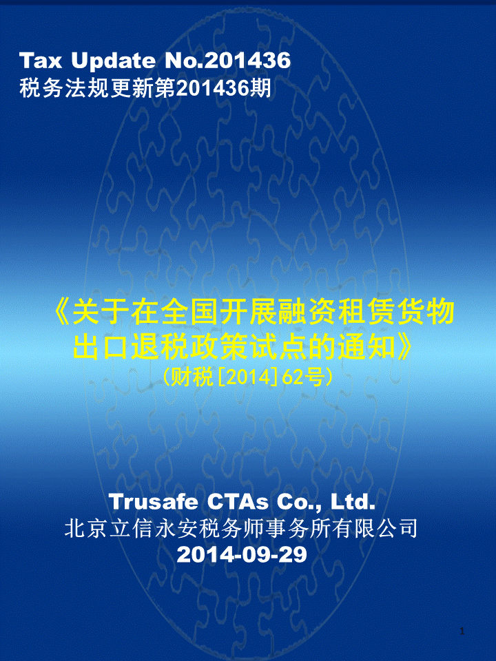 税法更新—《关于在全国开展融资租赁货物出口退税政策试点的通知》