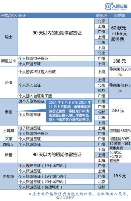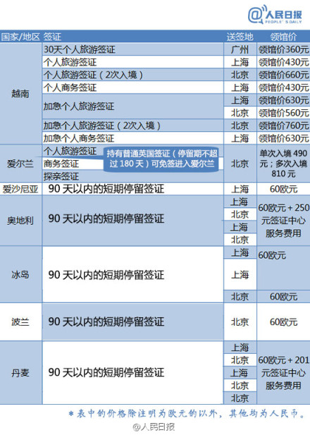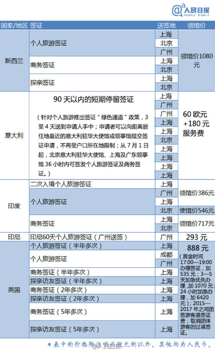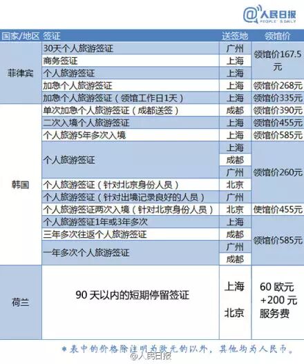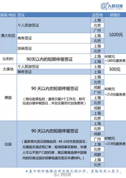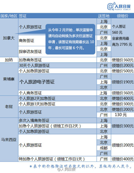史上最全各国(地区)签证最新领馆价格表
