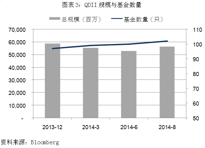 而截至2014年7月30日国家外汇管理局批准的QDII、QFII及RQFII计划额度分别为807.93亿美元、578.98亿美元、2576亿人民币,机构投资者在各自额度内限额使用。