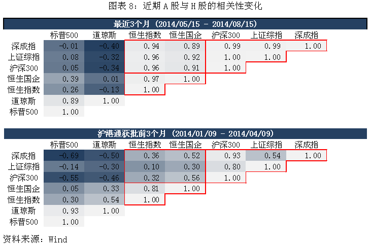 从市场带给投资者的财富效应来看,资本趋于流入财富效应较强的市场。当两地市场相关性加强,同涨同跌较为明显时,两地市场间发生大量单边资本流动的概率将降低。