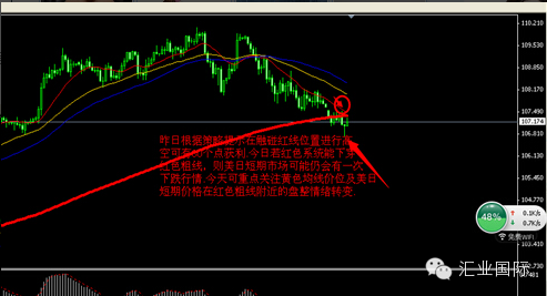 策略上,美日激进者可寻点位低多至107.75附近,在反手空.中线投资者可观望,等待价格回到黄色系统线附近在进行高空策略.