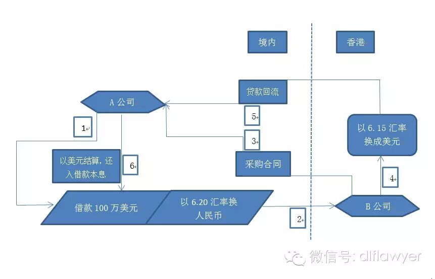 第一种模式:运用离岸与在岸人民币套利。例如,套利者在内地借款100万美元,按6.20的在岸汇率获得620万元人民币,然后从香港进口黄金等低物流成本的货物并采用人民币支付货款,这样620万元人民币就流到了香港,成了离岸人民币。然后,通过香港的合伙人,以6.15的离岸汇率换成美元,获得100.813万美元。最后,将进口的黄金出口给香港合伙人并采用美元结算,获利8130美元。如下图: