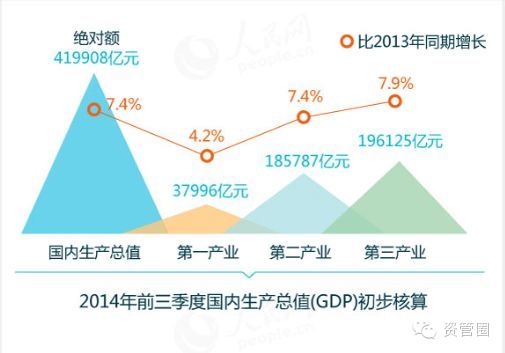 初步核算,前三季度国内生产总值419908亿元,按可比价格计算,同比增长7.4%。分季度看,一季度同比增长7.4%,二季度增长7.5%,三季度增长7.3%。分产业看,第一产业增加值37996亿元,同比增长4.2%;第二产业增加值185787亿元,增长7.4%;第三产业增加值196125亿元,增长7.9%。从环比看,三季度国内生产总值增长1.9%。