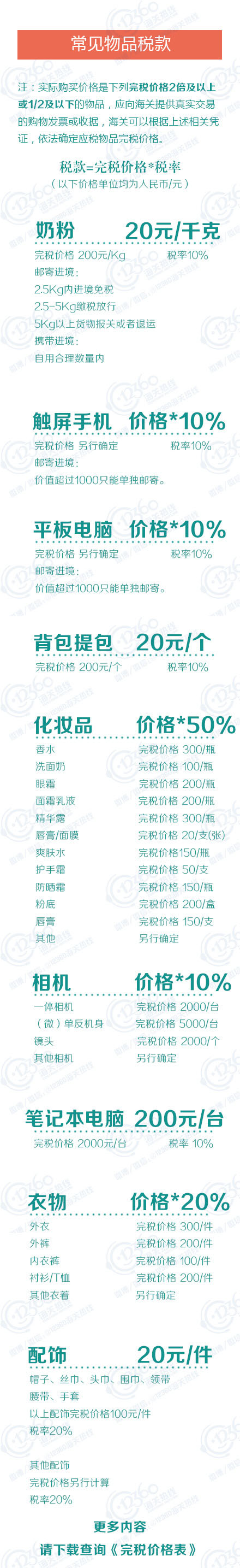 行邮物品税率分4种,分别是:10%、20%、30%、50% 。