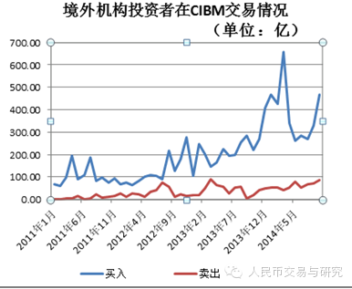 从境外机构投资债券的角度看,截止到2014年9月境外机构持有的债券总面额占全市场债券持有量比重仅为1.74%左右,即便是境外机构接受程度最高的国债,占比也仅为2.42%左右。虽然境外机构投资者所持有的各种债券占全部银行间债券市场的份额不断增大,但从存量看对整个债券市场影响较小,但由于诸如被限定只能参与二级市场交易、额度集中批复和开户时间较为一致导致建仓期重叠等因素,导致在一些境外机构集中建仓的月份,银行间债券市场深度不足的问题会被放大,境外机构的投资方向成为影响当时市场的重要标杆。