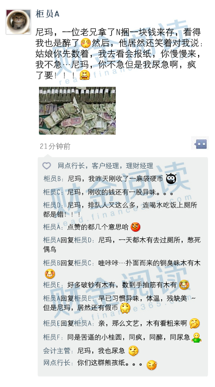 行长卖萌,柜员吐槽,大堂经理站岗,理财经理打广告,保安上进,押钞人耍帅,客户经理买醉,另有神秘人番外篇以及各大银行幽默帖。且看11.11这一