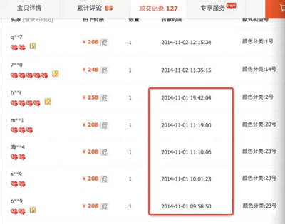 还有其他判断方法,简单交代,不予详解,一是,查看商品的成交记录,特别是要往前翻看,如果发现有多次购买的淘宝用户,刷单的可能性也很大;二是,查看商品的退货率,如果相比同品类店铺的退货率要低出很多,也很有可能是刷单。