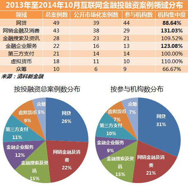 从整体上看,2013年至10月21日互联网金融领域共发生投融资案例191起,其中公开市场化投融资案例数(投资方信息公开的)147起,共有104家机构参与过投资。