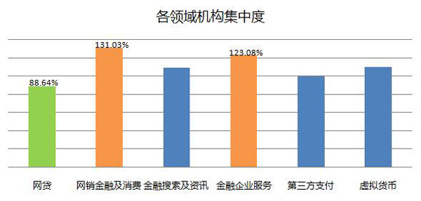 2.各领域的机构集中程度存在差异