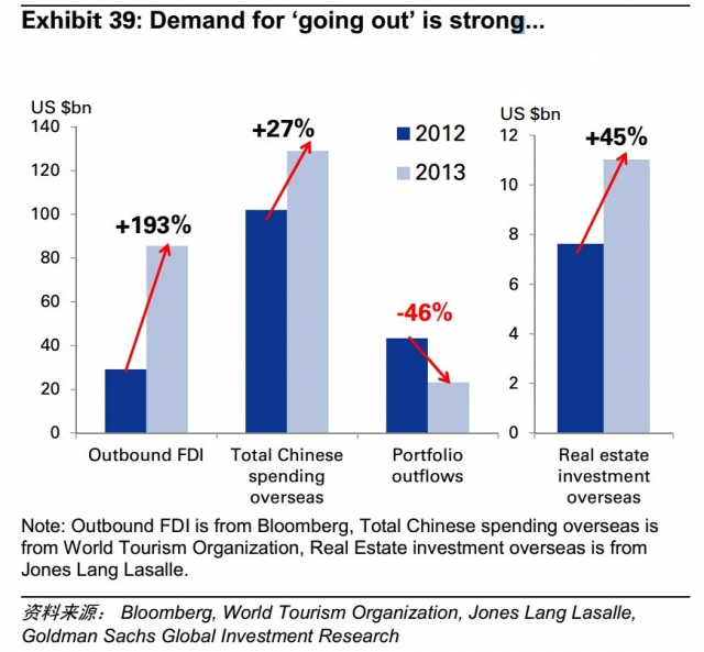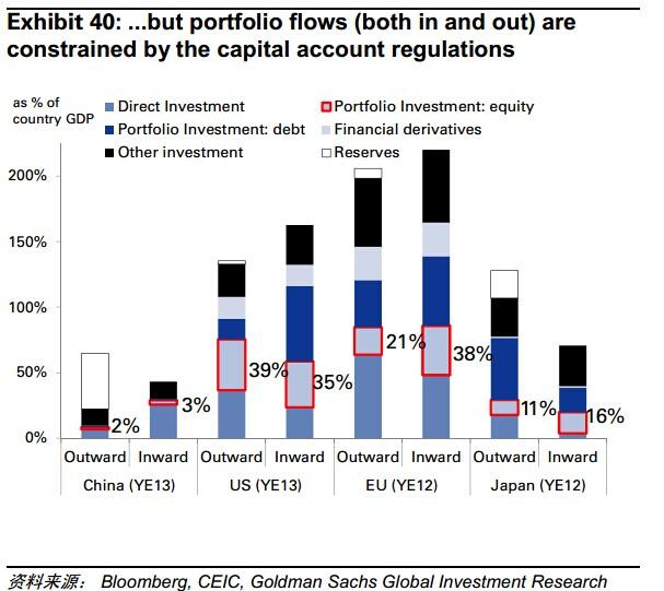 如图所示,无论是对外直接投资还是海外支出,中国资本“走出去”的意愿很强烈。然而,投资组合的进出却受到了严格资本管制的限制: