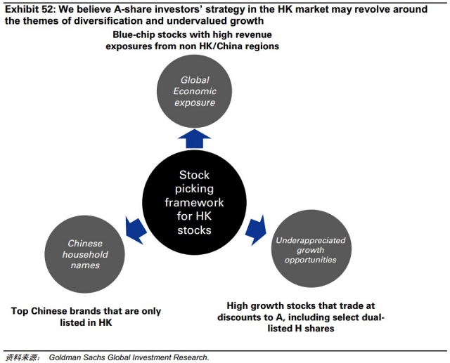 二、挑选港股的三大标准,包括:1)地域方面(来自非内地之收入);2)行业方面(稀缺性价值);3)业务方面(内地家庭熟悉之品牌)。此外,高盛认为内地投资者较偏好增长型及市值偏细之股份,而在本港上市而近乎有关条件之股份,估值相对A股为低,有望得以重估。
