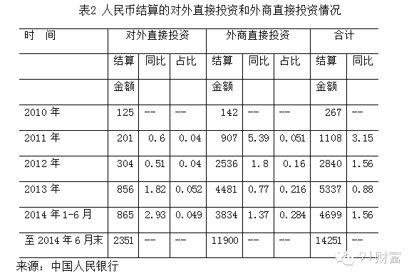 从表2可以看到人民币国际化拉动银行海外业务的一个例子。这张表显示,用人民币结算的对外直接投资的同比增速今年上半年达到293%,用人民币结算的外商直接投资今年上半年同比增长137%。这些快速成长的业务都需要银行来提供服务,如果银行能够抓住这类机遇,就有很大的海外增长空间。另外,银行提供了这些服务之后,反过来又能够推动对外对内的直接投资。从某种意义上来讲,银行对外扩张是整个民间资产负债表对外扩张一个引导性、推动性力量。