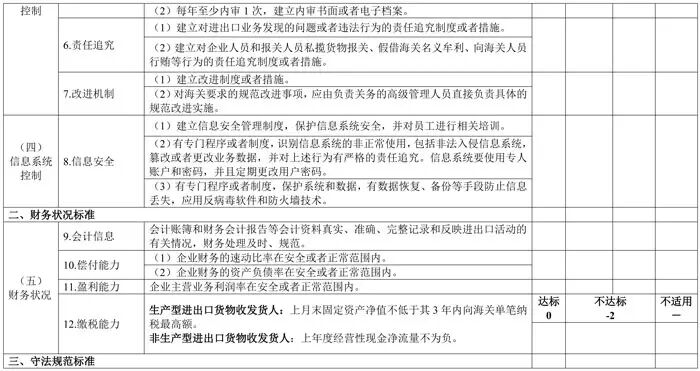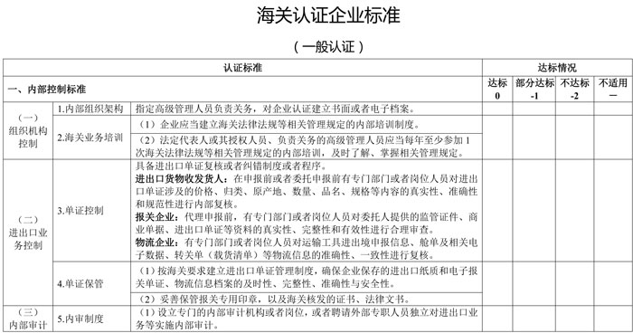 一、关于认证标准的分类 本认证标准分为内部控制、财务状况、守法规范、贸易安全和附加标准,共5大类18条29项。其中前4类为基础标准,第5