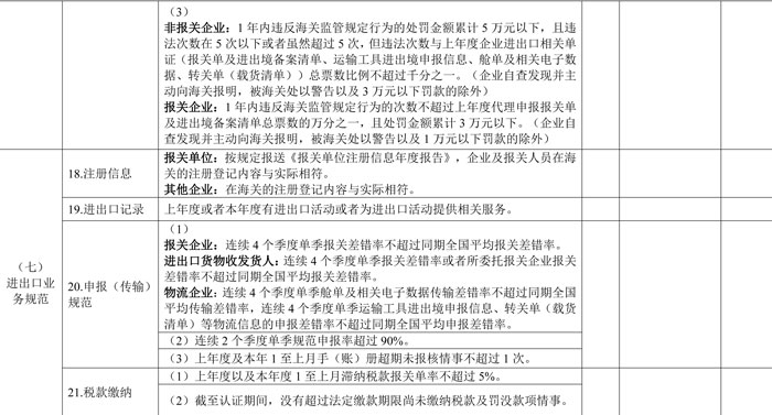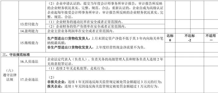 除本认证标准第12、13、14、15、17、22、23项外,其他项不达标或者部分达标的,允许企业规范改进。规范改进期限由海关确定,最长不超过90日。根据规范改进情况,海关认定是否通过认证。