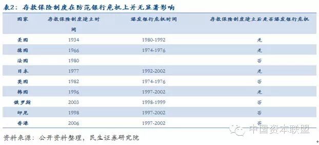 但另一方面,存款保险制度的存在加剧了逆向选择和道德风险,反而有可能加剧了金融体系的不稳定性。在显性存款保险体制下,由于储户存款保险受到保护,储户不必根据银行资质来选择存款银行,存款保险制度保证了其存款的安全性,存款利率高低就成为储户选择银行的唯一标准。逆向选择表现在经营更冒险的银行自然愿意提供更高利率,能够吸收更多的存款,而稳健经营的银行反而会被市场淘汰。道德风险表现在存款保险制度的存在使得银行几乎不会受到储户的监督,因而将大量信贷资产配置于高风险投资之中,以获取高额的回报。一旦经济出现较大波动,这些高风险行业容易演变为大量的不良贷款,进而导致金融体系陷入到危机之中。从国际经验看,存款保险制度在防范银行危机上也并无显著地影响。