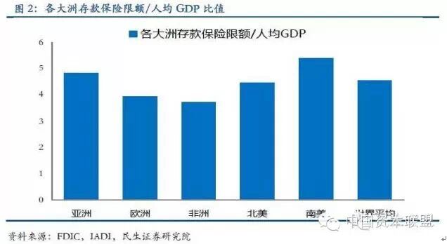 中国人均GDP约为4.2万元,国际上主要国家最高保险限额约为人均GDP的4-5倍左右,该指标在亚洲的平均数为4.5(剔除印尼80倍的异常值)。考虑到通货膨胀因素和中国直接融资的发展在全球范围内相对滞后,预计中国最高保险限额约为20万元左右。实际上,20万已下的存款账户占比中国存款总账户的99.32%,10-20万元左右的最高保险限额覆盖的广度已足够(2006年中国金融稳定报告)。当然,最高保险限额并非一直不变。一方面,随着经济的发展,人均GDP规模和最高保险限额能够覆盖的存款账户比例是不断变化的。另一方面,银行危机期间,政府会考虑暂时性扩大最高保险限额以增强公众对银行的信心。