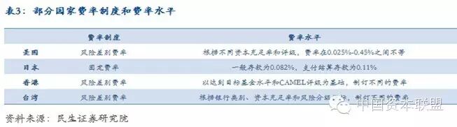 ④存款保险费率设定是单一费率还是基于差别费率?所谓单一保费制度就是对所有投保的金融机构都采用统一的保费水平。而差别费率机制,是根据投保金融机构特征收差异保费。