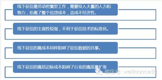 线下征信的高昂边际成本阻碍了行业的高质量扩张。尽管近几年的国内P2P借贷行业发展迅猛,但主要依靠人力、资金等非技术要素的投入增加来支撑,这使得P2P借贷日益成为劳动密集型、资金密集型行业,体现的是粗放式增长,未能发挥其技术创新优势,常常招致批评。