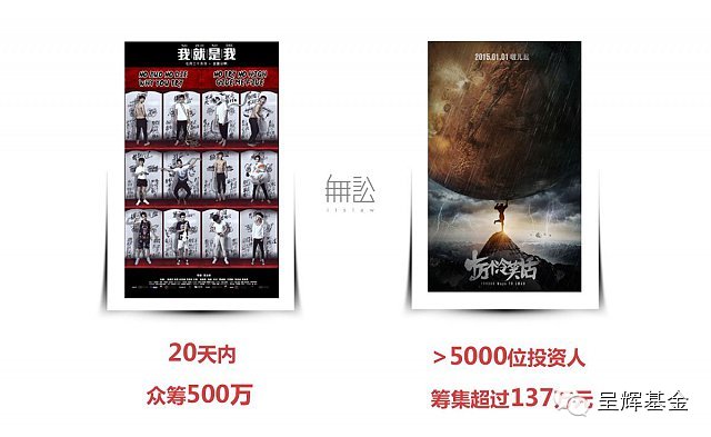 当然,这种谨慎不无道理,国内的众筹平台虽然发展迅猛,但是仍然走在政策红线的边缘,特别是以投资回报为目的的股权众筹,和 "非法集资 "仅一步之遥。相对于股权众筹面临的重重法律障碍(诸如前文所提的非法吸收公众存款、非法发行证券、公司人数限制等),产品众筹在中国的法律障碍更小,也更容易发展。产品众筹的优势在于金额小,参与人数多,具有有话题性。文化娱乐行业,尤其是电影行业关注度高,具备观众基础。