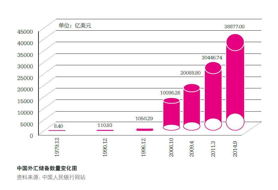 自1994年我国外汇储备由中国人民银行集中经营管理以来,外汇储备经营管理事业已足足走过了20个春秋。截至2014年9月末,我国外汇储备规模已达3.89万亿美元,连续8年位居世界第一。过去20年,外汇储备规模累计增长了180倍,年均增速达30%。这是改革开放以来我国不断融入全球化进程、国民经济快速发展和国际竞争力大幅提升的重要体现,也是国家经济金融安全的重要保障,为我国成功抵御历次外部冲击发挥了重要的保驾护航作用。