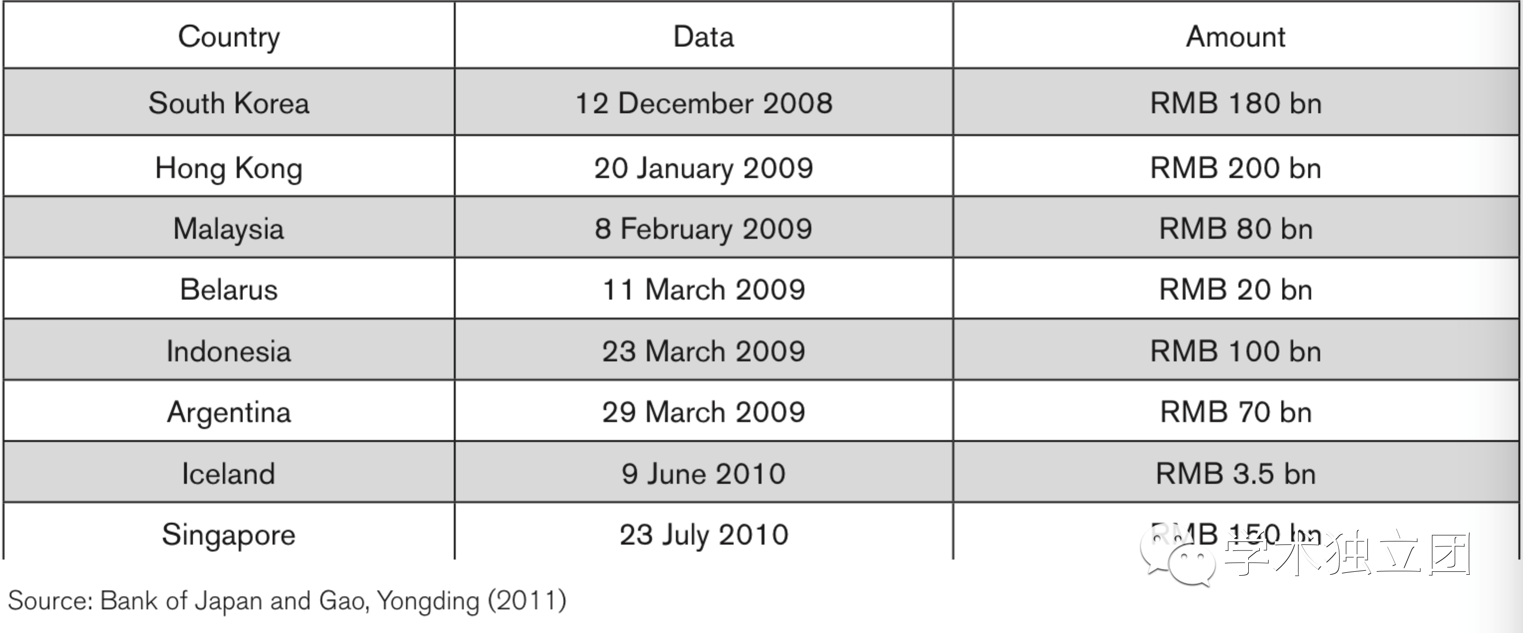 表2. 自雷曼兄弟破产以来中国签订的双边本币互换协定