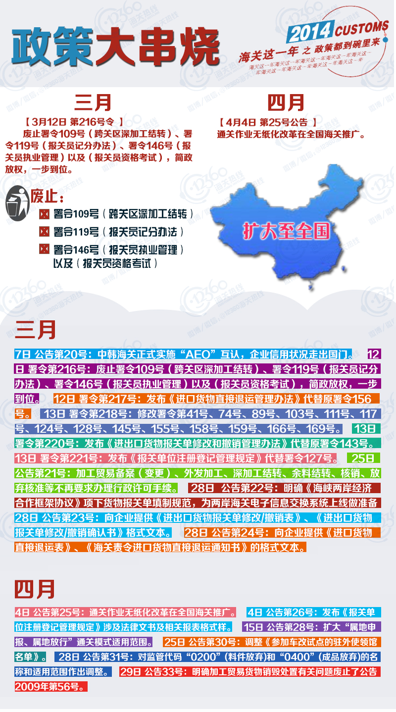 这一年,海关发布了94个公告,11个海关总署令。