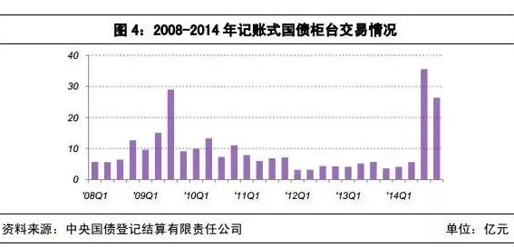 2014年,商业银行柜台业务运行平稳。2014年商业银行柜台新增记账式国债21只,国开行金融债3只和进出口银行债4只。期限品种进一步丰富,包含1年、3年、5年、7年、10年和15年等六个品种。2014年,记账式国债累计成交71.7亿元,同比增加283.4%,商业银行通过柜台分销国开行金融债67亿元,进出口银行债30亿元。截至2014年末,商业银行柜台开户数量达到1674 万户,较上年增加317万户,增长23.4%。
