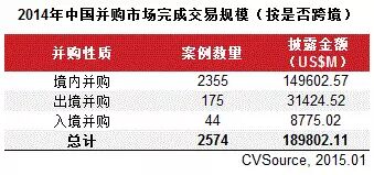 表6 2014年中国并购市场完成交易规模(按是否跨境)