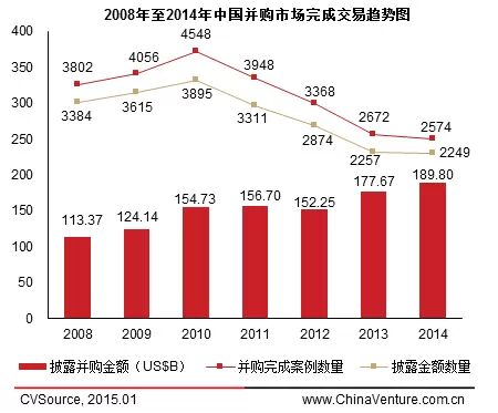 2014年中国经济发展并不乐观,中国经济结构转型正处于关键时期,在此背景下,众多企业通过并购重组做大做强进行扩张,或通过并购实现产业转型的意愿更加强烈,助推了并购市场的火热发展。