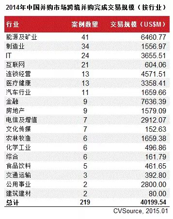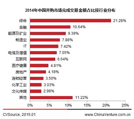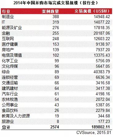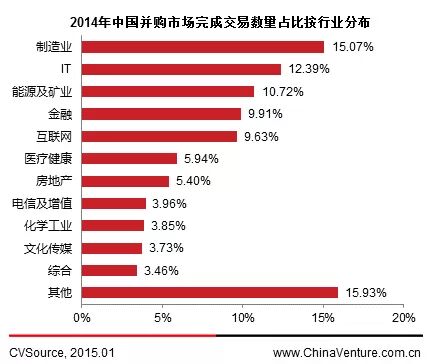 就行业业分布来看,2014年制造业仍为并购高发行业。