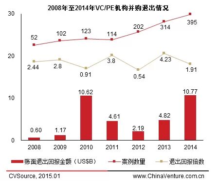 在IPO退出不畅的情况下,并购退出成众多VC/PE机构的首选,2014年并购退出规模再创新高。