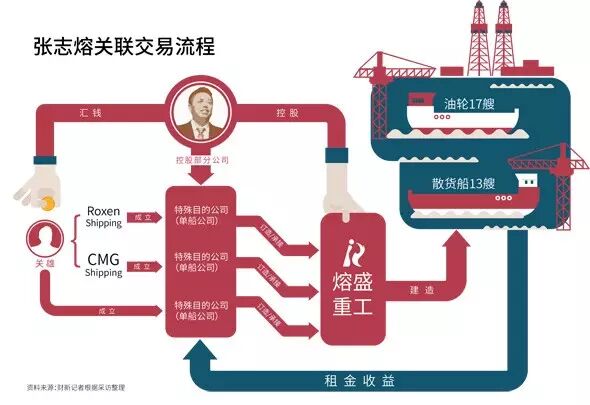 据熔盛重工一位内部人士透露,关雄是张志熔的朋友和生意伙伴,常与张志熔一起出席饭局;张志熔很少向别人介绍关雄,只说是“在北京做基金的朋友”。另一位参与运作的熔盛重工内部人士则向财新记者透露,这些订单实际上是张志熔通过个人渠道将钱转给关雄的香港公司,然后关雄的香港公司再到熔盛重工下单造船。