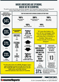 近年来更多的美国人会把手中的钱54%花在电子产品上,33%花在衣服上,27%花在车上,还有23%花在装修上。谷歌上找到的调查:如果美国人中了10万美金的彩票,他们会做什么?数据显示,其中10%用来投资,29%作为一个新房子的首付,19%用来重新装修房子,12%去旅行,11%买一辆奢侈的车。