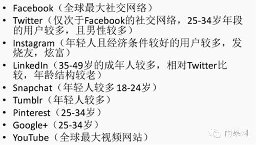 社交网络是近年来增长比较迅速的网络方式,特别是Facebook在世界上的影响力非常大。通过这些社交网络,我们可以了解到国外最新的资讯和话题,从这些信息中,我们可以提炼出我们需要的信息,转化成商机。例如,通过Facebook可以看到最近年轻人喜欢什么样的户外活动,喜欢穿什么款式的衣服,一些妈妈喜欢给孩子准备和买什么样的母婴产品。