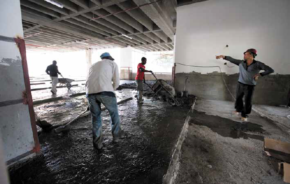 (图:2014年5月13日,来自中国的建设工人站在内罗毕的工地。“中国企业工作勤奋,做工精湛,项目执行迅速,赢得了许多肯尼亚人的尊重和钦佩。”内罗毕大学城市规划讲师彼得说。)