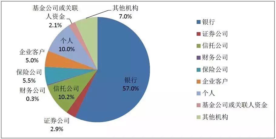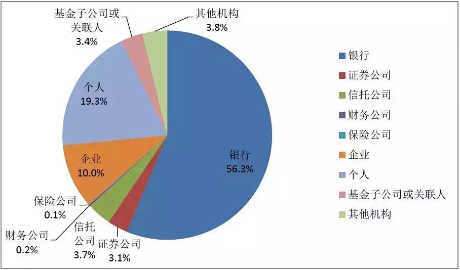 截至2014年底,基金公司专户资金来源主要包含:银行委托资金6972亿元,占比57%;信托公司委托资金1245亿元,占比10.2%;个人委托资金1228亿元,占比10%;保险公司委托资金678亿元,占比5.5%;企业委托资金606亿元,占比5%;证券公司委托资金361亿元,占比2.9%;基金公司及关联人委托资金259亿元,占比2.1%;其他机构委托资金858亿元,占比7%。