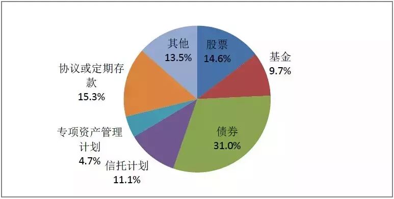 截至2014年底,集合计划主要投向债券、协议存款或定期存款、股票、信托计划、证券投资基金,分别占总投资规模的31.0%、15.3%、14.6%、11.1%和9.7%。满足客户稳定收益需求的债券、协议存款等固定收益类资产依然是证券公司优先配置对象,占比较2013年有所增加。股票、基金投资占比同2013年基本持平。