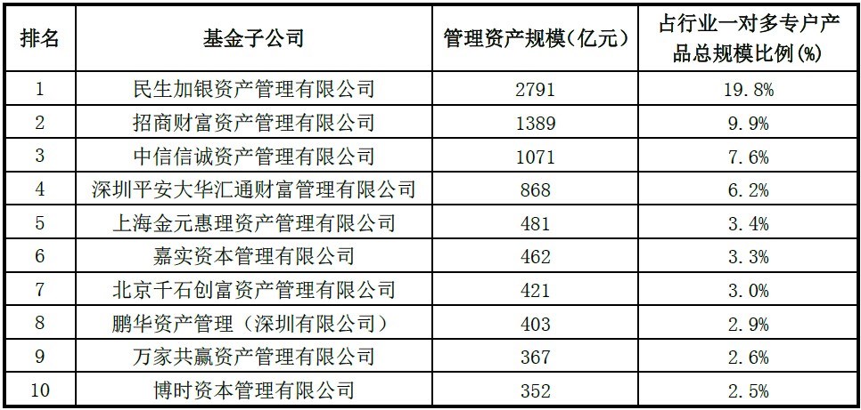 2014年基金子公司一对多专户产品管理资产规模排名(前10)