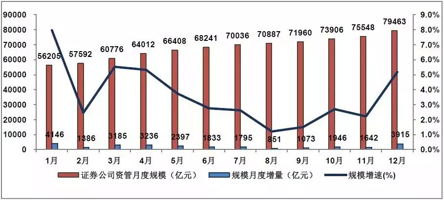从全年来看,证券公司、基金公司及其子公司资管业务呈现以下特点:一是资产管理规模继续增长,全年增速平稳,年末受多种因素影响出现飙升;二是机构主动管理能力进一步加强,主动管理规模及其占比上升;三是通道业务增长趋缓,资管业务结构逐步优化,信托贷款、委托贷款规模增量下降,票据、信用证等投资规模增量上升;四是产品类型进一步丰富,投资领域不断拓展,机构依据自身优势资源逐步形成特色业务;五是资产管理行业竞争加剧,基金公司、基金子公司行业集中度下降。